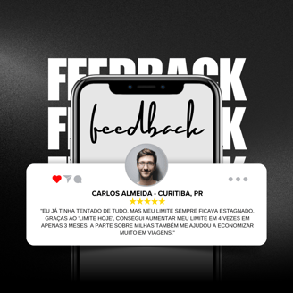 O método que compartilho no e-book “Limite Hoje” é muito mais do que um conjunto de dicas. Ele é um mapa para transformar sua vida financeira, te ajudando a aumentar seu poder de compra, aproveitar benefícios exclusivos dos melhores cartões e usar o sistema bancário a seu favor.